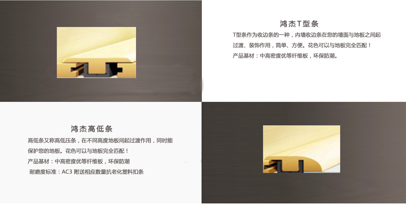 專業(yè)生產(chǎn)各類地板輔料。本廠成立于2008年,經(jīng)過嚴(yán)格的質(zhì)量控制,已開發(fā)出SPC、WPC、層壓板三種不同的壓花材料。每一種材料都有超過7種不同的過渡型材,如t型線、減速器、端蓋、四分之一圓、樓梯前鼻、樓梯板、踢腳板等。    SPC和WPC是我們的新產(chǎn)品,在世界各地越來越受歡迎。各種造型將達(dá)到您的個性化需求,100%匹配您的SPC, WPC或乙烯基地板的顏色。     我們的傳統(tǒng)產(chǎn)品——層壓板是世界領(lǐng)先的產(chǎn)品之一,具有熱壓耐磨層加工技術(shù),高溫高壓。其質(zhì)量可靠,品種齊全,經(jīng)久耐用,耐磨,使層壓板成型經(jīng)久不衰。     我公司不僅與國內(nèi)一些大型、信譽良好的地板生產(chǎn)廠家和代理商建立了長期的合作關(guān)系,產(chǎn)品還出口到臺灣、日本、菲律賓、美國、加拿大、非洲、澳大利亞、歐洲等國家和地區(qū)。 歡迎來廠參觀、洽談業(yè)務(wù)。